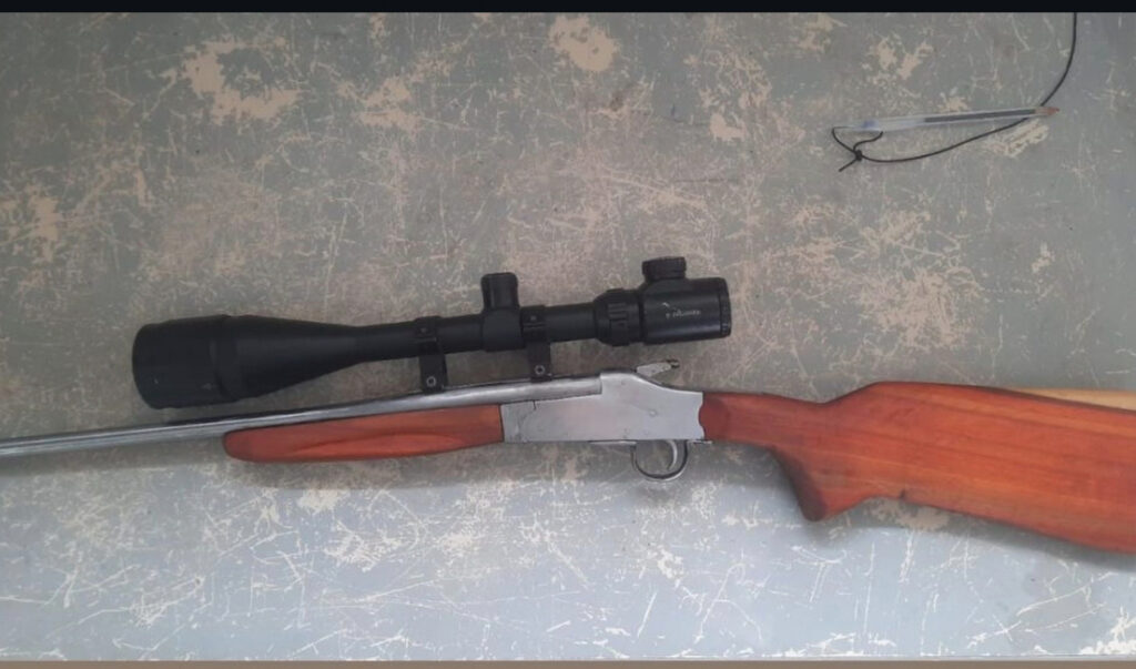 No local, foi localizada uma arma de fogo do tipo espingarda, calibre .22, municiada com 01 munição intacta do mesmo calibre, pronta para uso.