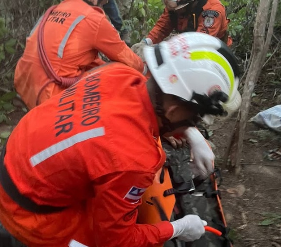 Após a chegada do DPT, por volta das 16h, os bombeiros iniciaram a incursão na mata com o apoio de moradores da região, percorrendo cerca de 3,5 quilômetros serra acima até alcançar o corpo.