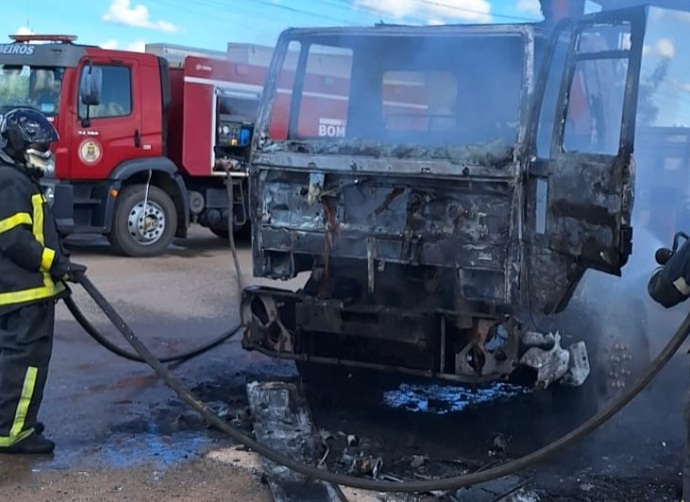 De acordo com o solicitante, um caminhão estava em chamas próximo à sua residência. Ao chegarem ao local, os bombeiros constataram que o fogo havia atingido um caminhão munck, possivelmente devido a uma pane elétrica. As chamas consumiram toda a cabine e parte da carroceria do veículo.
