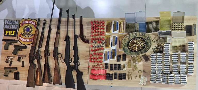 Ao chegar na localidade, o proprietário do imóvel negou que o procurado estaria no local, porém as equipes conseguiram confirmar a sua presença e, buscando capturá-lo, adentraram ao imóvel, quando localizaram diversas armas e munições que estavam à vista.