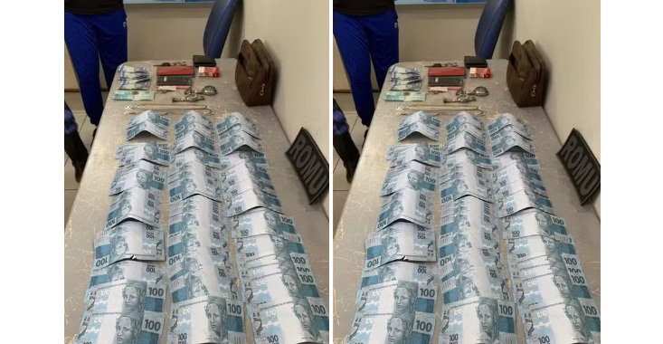 Eles foram abordados e, no carro em que estavam, foram encontrados R$ 4.200 em notas falsas, além da apreensão de um cigarro de maconha, cinco celulares, dois relógios, quatro correntes, uma carteira e o carro.