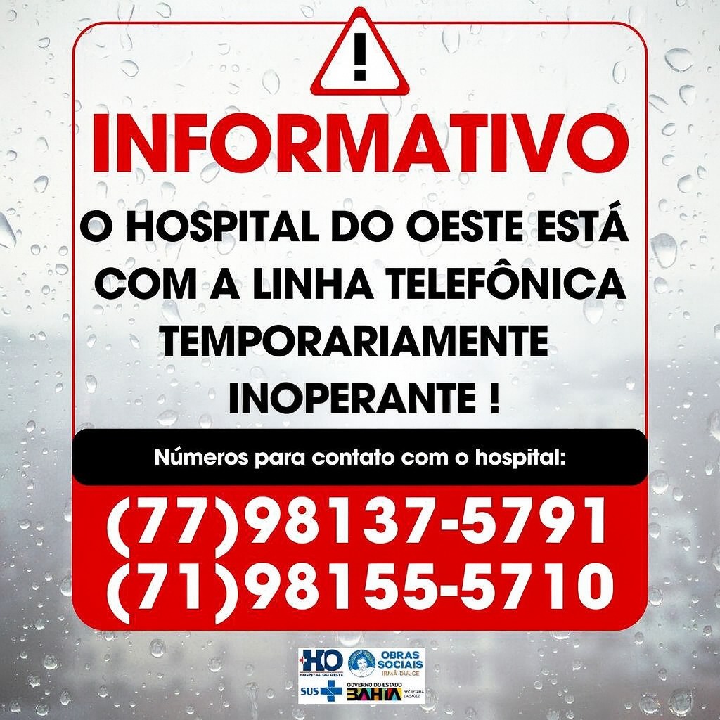 Hospital do Oeste está com o telefone temporariamente inoperante