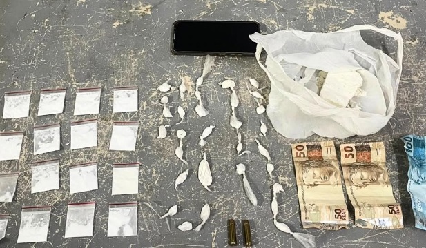 Após procedimentos de abordagem foi encontrado com o homem todo material ilícito sendo apresentado na Delegacia de polícia Civil local onde foi lavrado o auto de prisão em flagrante. Foram apreendidos 178g de cocaína, 02 cartuchos calibre 38, 01 celular marca Samsung, a quantia de R$ 200 em espécie e prenderam em fragrante um homem de 18 anos pela prática do crime de tráfico de drogas e porte ilegal de munição.